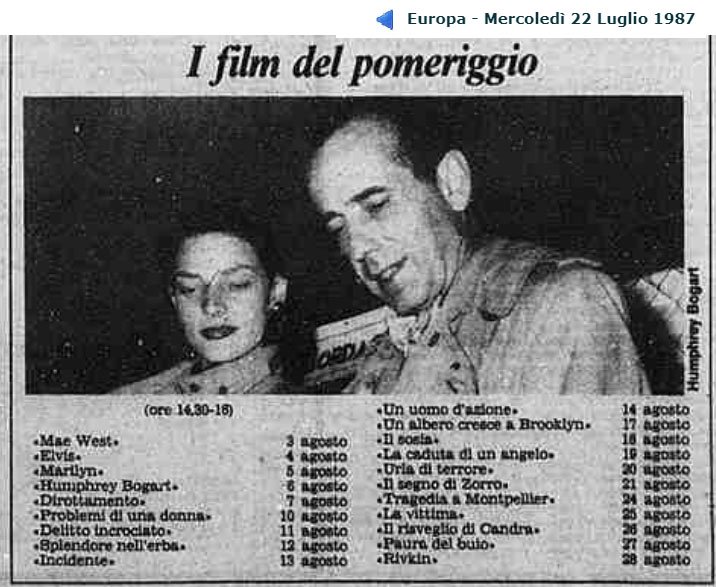 Ritaglio di giornale, cartellone delle proiezioni cinematografiche al Circo Massimo, nell'estate del 1982