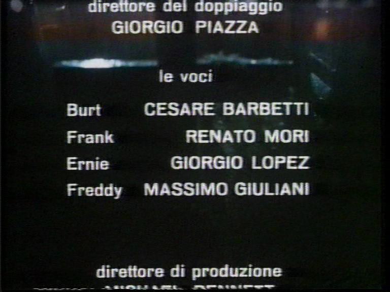 Con l’aiuto di alcuni collaboratori abituali del blog (il nostro Leo e Francesco “Orecchiofino” Finarolli) ci siamo messi ad ascoltare ogni singola voce di questo film (ve l’ho detto che adoro questo film, no?), arrivando così a colmare (per la prima volta in assoluto) molte delle lacune riguardanti il cast di doppiatori, anche per quei personaggi che hanno letteralmente una o due battute e che dal 1985 ad oggi non erano stati mai identificati. Ed eccoveli in esclusiva con tanto di attribuzione su chi le ha riconosciute, come è giusto che sia: